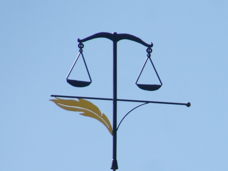 Informations : L’artiste qui a forgé cette girouette a fait figurer une plume d’oie surmontée d’une balance de justice.