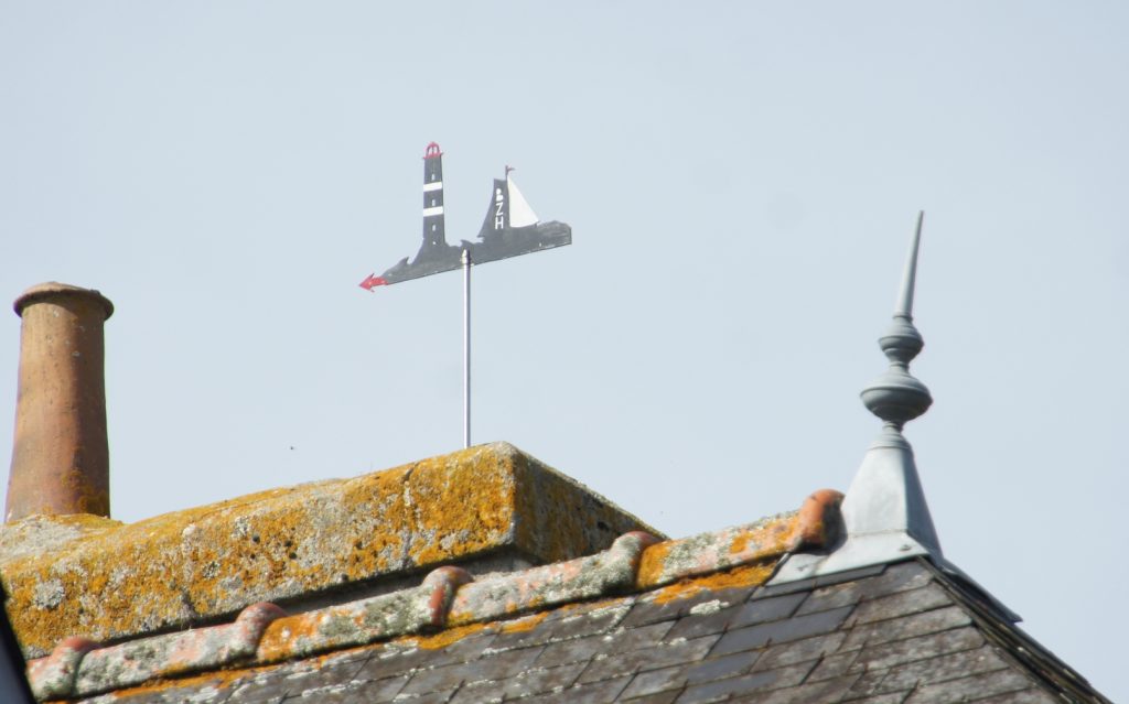 Informations : La girouette représente l’ancien bateau, un cotre aurique, copie des bateaux goémoniers de Plouguerneau, du propriétaire de cette maison. Ce bateau a participé aux fêtes maritimes du Faou.