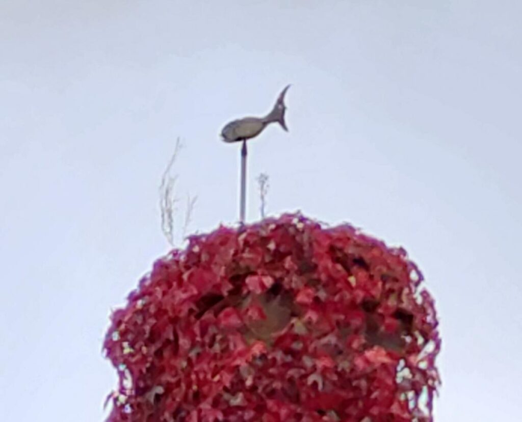Informations : Ce poisson indéterminé a été fabriqué par un ancien marin et moniteur de voile avec de la tôle d’un avion tombé pendant la deuxième guerre mondiale.